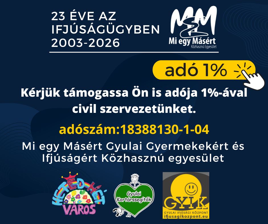 Örömmel üdvözlünk a Mi egy Másért Gyulai Gyermekekért és Ifjúságért Közhasznú Egyesület weboldalán.